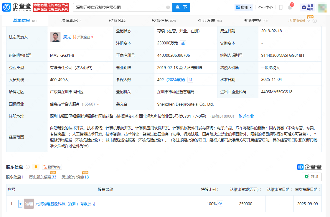 近日,深圳元戎启行科技有限公司发生工商变更,注册资本由19.59万人民币增至25亿人民币。企查查信息显示,该公司成立于2019年2月,法定代表人为周光最专业的配资公司,经营范围包括自动驾驶的技术开发、人工智能技术开发、计算机应用软件开发等,由元戎物理智能科技(深圳)有限公司全资持股。据悉,元戎启行是一家辅助驾驶系统研发商。