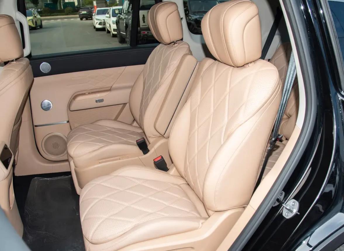 车身侧面轮毂显得特别修长,它的长宽高为5205*1998*1800毫米,轴距超3米来到3120毫米,又是采用六座布局,因此能够保证每一排空间的乘坐舒适性。就算是第三排也有很宽敞的腿部空间,对于1.7米高个子来说,头部和腿部空间都很宽敞舒适。并且第三排还支持加热,也支持电动调节或放倒。那第二排座椅和副驾驶座椅也是女王座驾,它们都配有腿托、加热、按摩等功能。而且它的轮毂尺寸来到20英寸,搭配上个性化造型,侧面也像极了路虎揽胜。另外后排配有隐藏玻璃,前排配双层隔音玻璃,尾部保留SUV风格的设计,保留有翼子板和贯穿式尾灯,风云T11的气场拿捏很强。