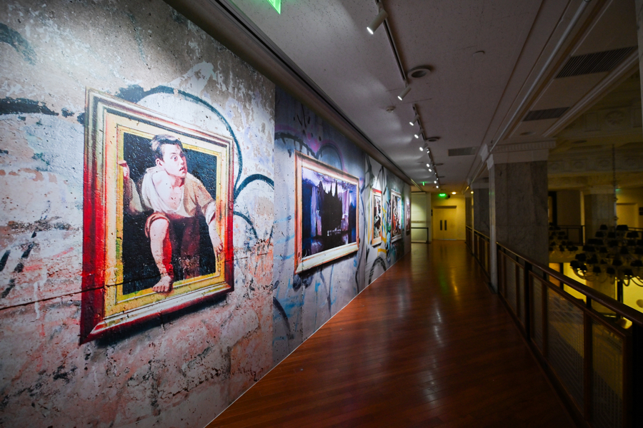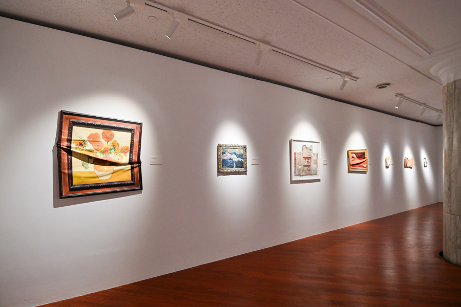 展览俨然一场别样的经典大师巡礼。只见伦勃朗、莫迪利亚尼、莫奈、维米尔、胡安·米罗、梵高、高更、毕加索、沃霍尔等大师名作都在阿纳亚笔下经历了一场“挪用与摹仿”的过程,但又总能生成独特的视觉张力。艺术家其实是想引导观众重新调整观看的焦点,通过位移与重建,赋予这些经典图像以新的意义。阿纳亚坦言希望通过作品“打破人们对艺术的固有感知”,让观者在困惑中跳出“舒适区”,激发对艺术本质的思考。