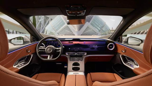 至于说驾驶舱的设计,这一批奔驰无论是燃油车,还是纯电动车,都将在家族设计语言背景下完成全车系延伸。尽管奔驰E级EQ还没有可靠的曝光,但我们可以稍稍参考奔驰GLC级EQ的设计,也就是搭载有总体显示面积为39.1英寸的MBUX超级屏幕。能看到的是,这样的新设计还是在T型中控台基础下打造的,而MBUX超级屏幕不仅在两端以同一面板包裹了炮筒式出风口,也实现了仪表、中控、副驾驶娱乐的三屏合一。其实在新势力当中,三联屏早就不少见了,但像奔驰这样采用单一屏幕来覆盖所有信息娱乐的确实不多。